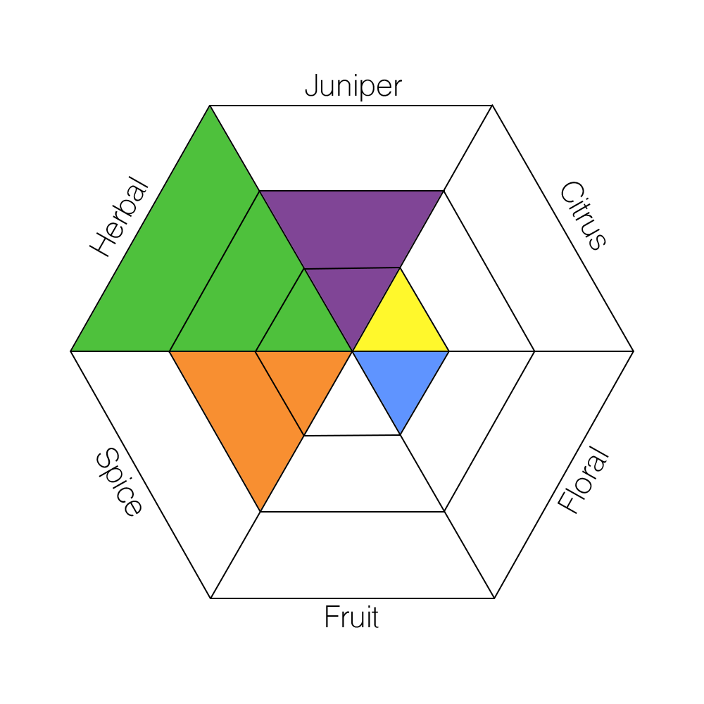 The main taste profiles in gin are: Juniper, Citrus, Floral, Fruit, Spice, and Herbal.