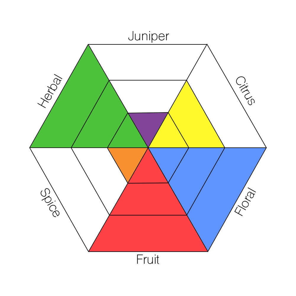 The main taste profiles in gin are: Juniper, Citrus, Floral, Fruit, Spice, and Herbal.