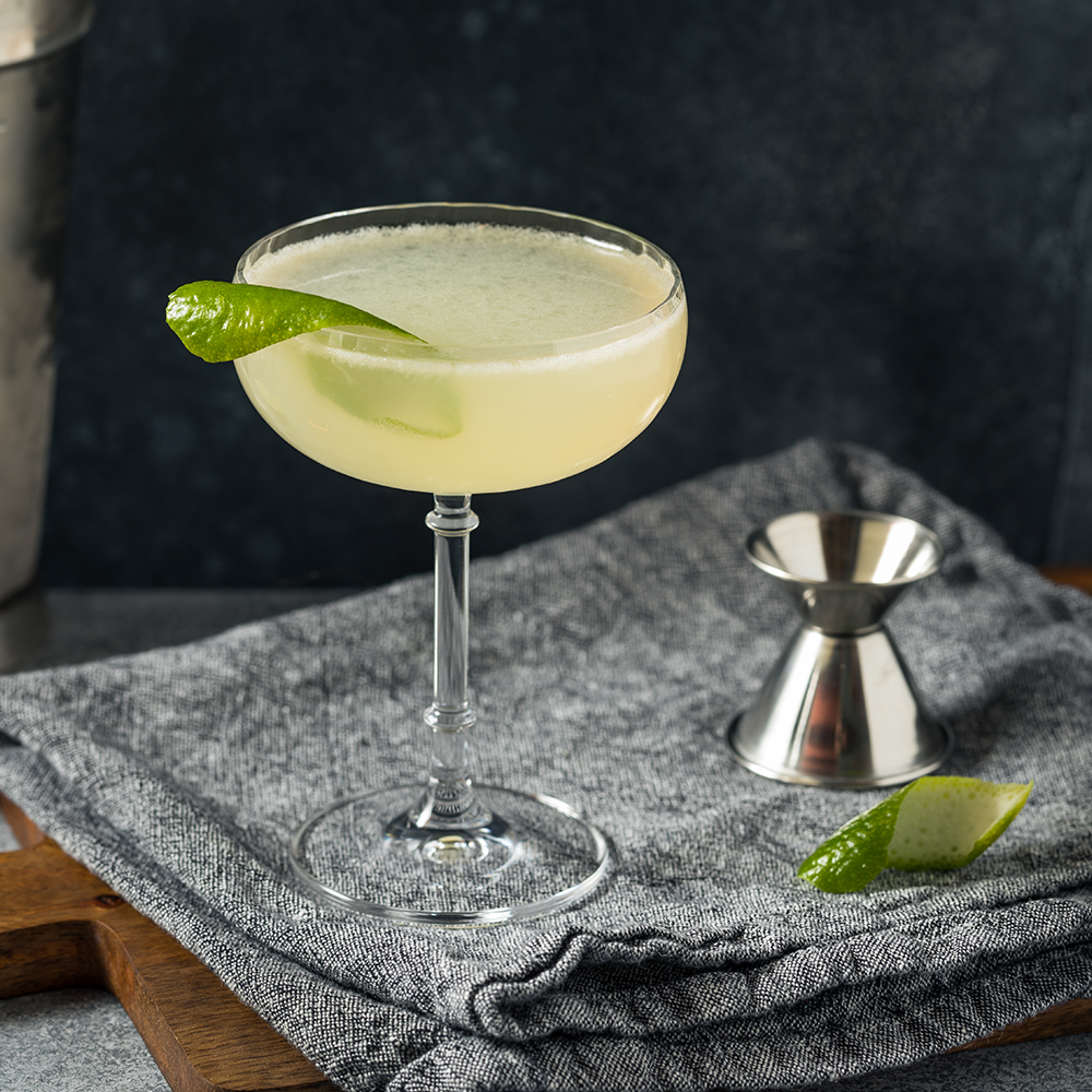 - Pour the gin, lime juice, and simple syrup into a shaker with ice and shake until well chilled